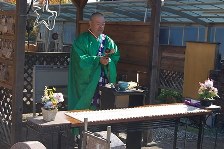 今年も河南町の箱泉寺(そうせんじ)の川村運快和尚に読経して頂きました。